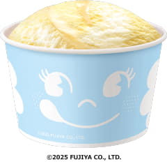 ミルキーをイメージしたコク深いミルキー風味アイスクリームと、すっきりしたミルクの味わいが特徴のミルキー風味シャーベットに、バターオイルが隠し味の甘くとろけるミルキー風味リボンを合わせた商品。