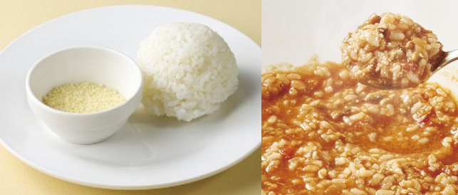 スープパスタで楽しめる〆は、リゾットか米粉パン。ご飯とチーズが付くセットのリゾットは219円。スープに浸して食べられるセットの米粉パンは164円。