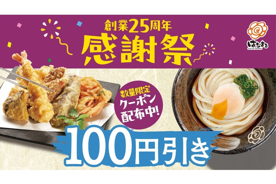 はなまるは「創業25周年感謝祭」を実施しており、その第5弾と第6弾としてクーポンリレーを実施する。