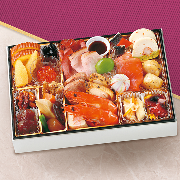 おせちの定番具材をバランスよく取りそろえ、お正月の食卓に欠かせない彩りを感じられる商品。