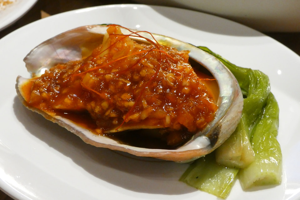 蒸しアワビ オイスターチリソースは、柔らかく蒸したアワビにピリ辛のオイスターチリソースをかけ、本格的な中華料理の味わいを演出。上品なアワビの旨みが楽しめる。