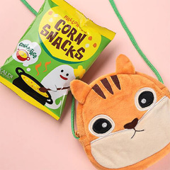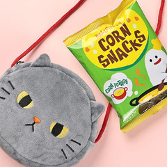 やわらかな手ざわりのミニポシェットの中にスナック菓子(10g)が入って価格は811円。ポシェットのサイズは約150×130×20mm(持ち手、突出部含まず)。