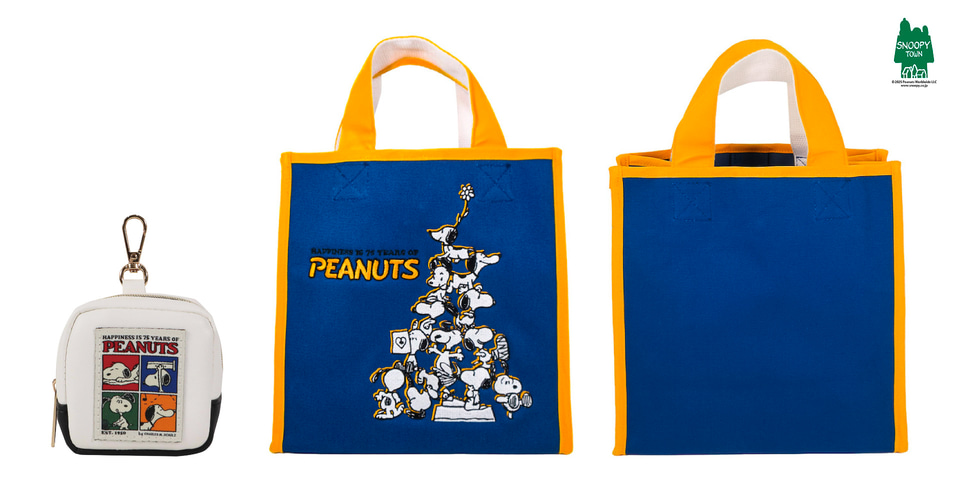 期間中にファミマのアプリ「ファミペイ」を提示して対象の菓子を購入すると、1品につきスタンプを1個付与。スタンプをためて好みのコースに応募すると、抽選でファミマポイントやオリジナルグッズが当たる。「オリジナル75周年お出かけセット」はPEANUTSコミック誕生75周年のデザインをあしらったポーチとトートバッグのセット。