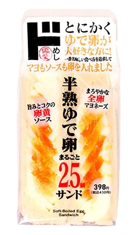 半熟ゆで卵をまるごと2.5個使っており、断面だけではなく、しっかり端まで入っているサンドウィッチ。