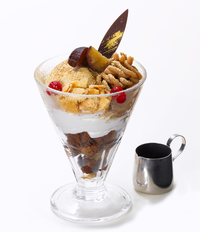 今年で9年目を迎える同社のマロンデザートは、「SELECTION」をテーマに、渋皮栗とチェリー、チョコレートを合わせたビターな味わいのパフェ「フォレ・ノワール仕立てのマロンパフェ」や、和のテイストを取り入れたパフェ「栗と黒豆きな粉の和パフェ~黒蜜添え~」などマロンの味を引き立てる多彩な食材との組み合わせが特徴となっている。