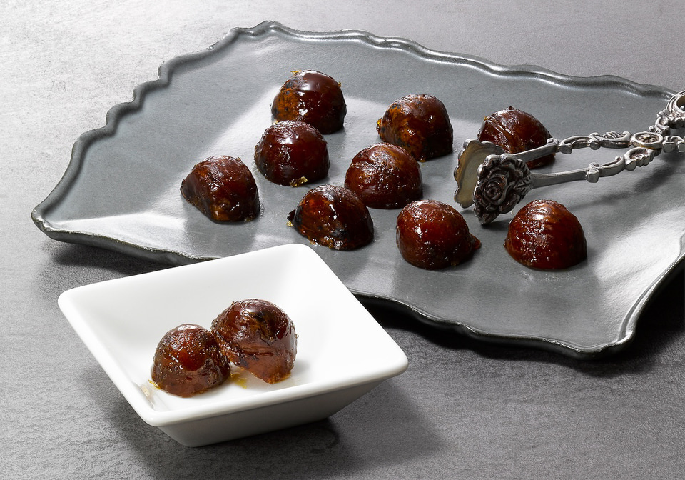 マロンデザートを注文した人限定の特別メニュー。店舗でひとつひとつ渋皮栗をキャラメリゼし、周りはカリッと、中はほっくりとした食感が特徴。