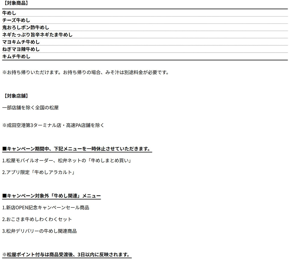 対象メニュー: 牛めし、チーズ牛めし、鬼おろしポン酢牛めし、ネギたっぷり旨辛ネギたま牛めし、マヨキムチ牛めし、ねぎマヨ辣牛めし、キムチ牛めし
