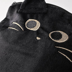 こちらも刺繍された瞳や耳と尻尾などが付いたかわいらしい黒ネコデザインのポシェット。カラビナ付きで、ニャップザックやバッグなどにぶら下げることができる。スナック菓子1袋とおせんべい1袋が入っている。