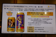 その上で、下期についても「共鳴&共創」をテーマに掲げつつ、荒木飛呂彦氏による美人画缶の第2弾を9月17日に発売することや、「ヱビスビール」本体のリニューアル、CREATIVE BREWの新商品発売、デュワーズ樽で熟成したビールの発売を発表した。
