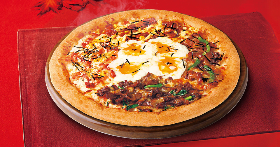 ピザハット(日本ピザハット)は、「すき焼き月見ピザ」を9月11日~10月26日の期間限定で発売する。