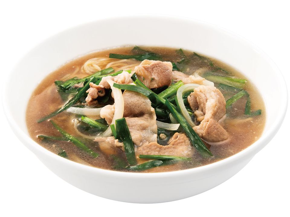 豚肉とニラの旨みと玉ねぎの甘味をしっかり引き出した醤油ベースの商品。具材には、豚肉、ニラ、玉ねぎを使用し、シンプルながらも素材の旨みがしっかりと味わえる。価格は700円で、餃子セットは980円、半チャーハンセットは990円。