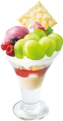 和食さと、長野産“シャインマスカット”を使ったフェアを実施。パフェ/ドルチェ/アイスケーキで味わう