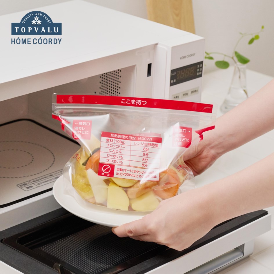 「レンジ調理バッグ」は、肉じゃがやカレーを電子レンジで手軽につくることができるほか、使い終わった後はそのまま捨てられるため、フライパンなどの調理器具の洗い物の手間を減らすことができる。