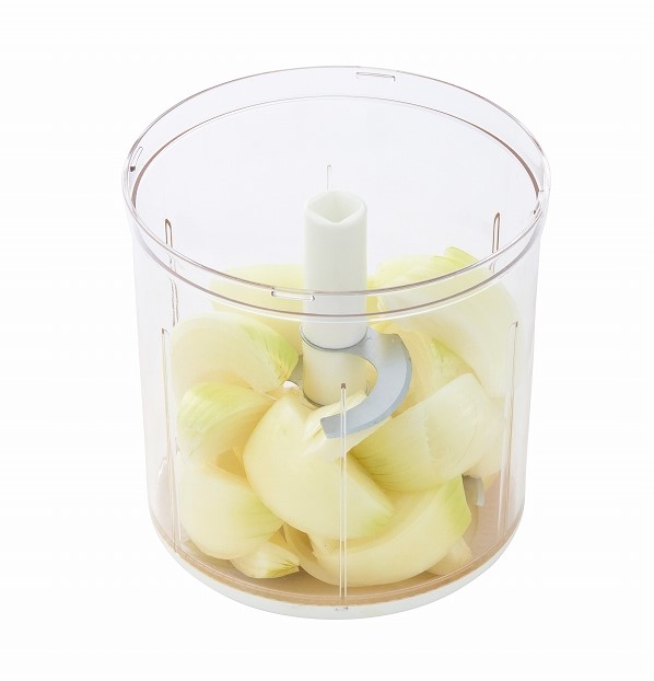 解凍の手間なく、冷凍食品をそのままカットできる「冷凍食品も切れるキッチンバサミ」と、たまねぎ3個を一度にみじん切りできる「みじん切りチョッパー」(1500mL)を組み合わせて活用することで、フライパン・まな板・包丁いらずの時短調理が実現するという。