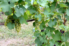 開園当初はメルローを栽植し、その後、カベルネ・ソーヴィニヨン、シャルドネ、ソーヴィニヨン・ブラン、シラー、ピノ・ノワールと品種を増やし、現在に至っている。それらの品種は、敷地内の標高や土壌の違いを考慮しながら栽培区画が設定されており、垣根仕立て(ギュイヨ式)の背の低い樹が整然と並んでいる。
