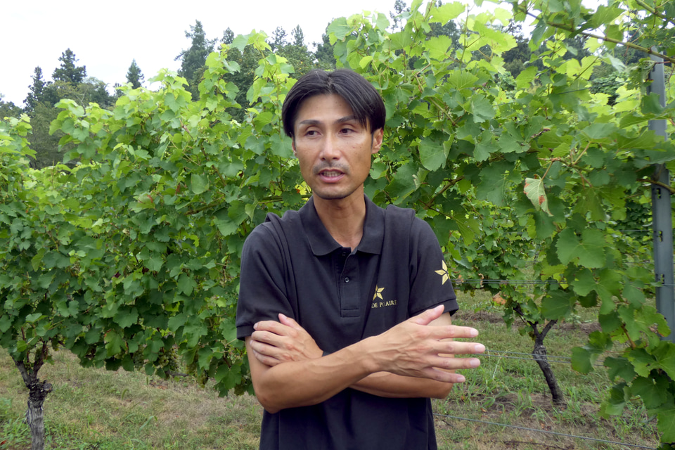 5月に閉鎖された勝沼ワイナリーで醸造に携わり、現在は安曇野池田ヴィンヤードで石原氏とともにブドウを栽培している渡邉真介氏は、栽培と醸造の担当者が綿密に連絡を取り合うことで適切な収穫のタイミングを見極め、土地とブドウの特徴を表現しているのがグランポレールのシングルヴィンヤードシリーズだと説明する。