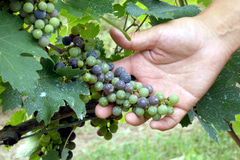 安曇野池田ヴィンヤード栽培責任者の石原大輔氏によれば、風通しがよく、標高が高いことから、昼夜の寒暖差が大きく、きれいな酸味があるワイン向けのブドウが育ちやすい。また、小石が多い地質で、土壌が痩せており、水はけがよいことから、ブドウの実が小粒になり、凝縮感のあるワインにつながっているという。