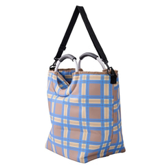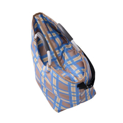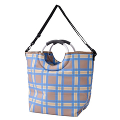 内側がアルミ蒸着素材でフードやドリンクをしっかり保冷しながら、たっぷり入る大容量のバッグ。持ち手のハンドルとショルダーが付いており、2WAY仕様となっている。底板が付いているので型崩れしにくく、安定して持ち運べる。
