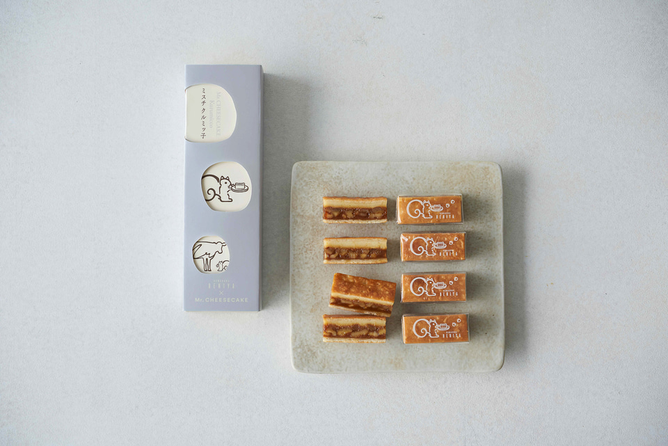 2年目のコラボとなる今回は、昨年に続き「クルミッ子」を「Mr. CHEESECAKE」で包んだような味わいのチーズケーキ「Mr. CHEESECAKE クルミッ子」に、さらに2商品を加えた3種のスイーツを展開。