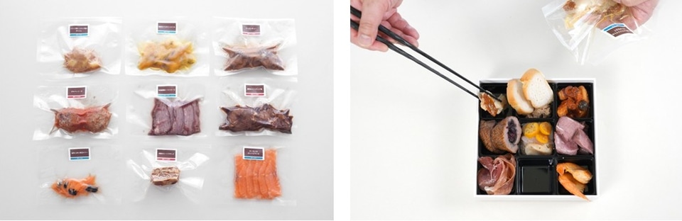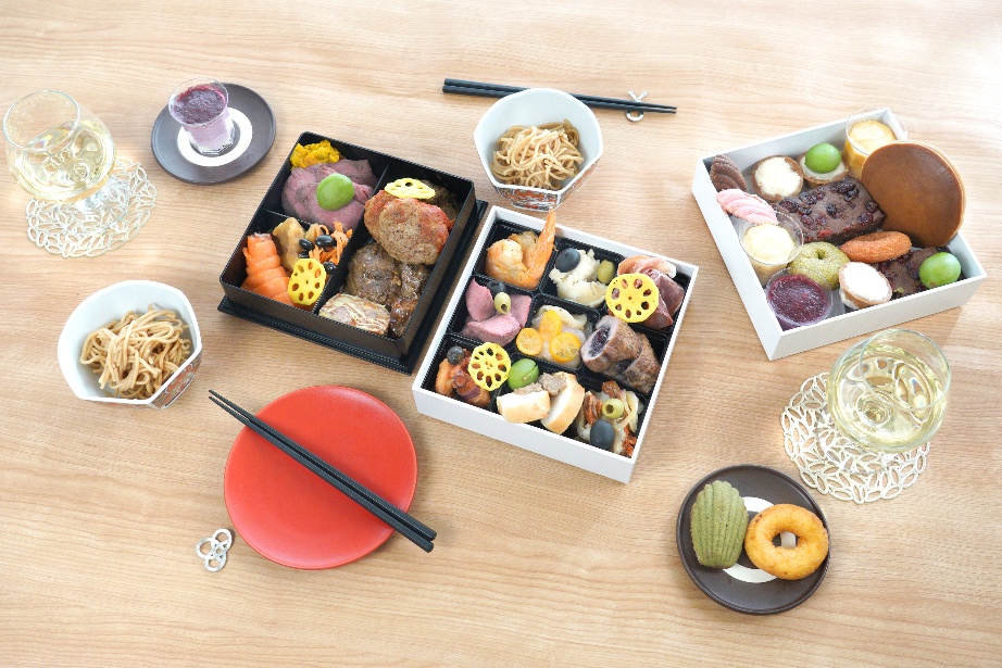 家族で楽しめるよう、「こどもの1段目」「おとなの2段目」とした2段重と、3段目の重として「デザートの3段目」を加えた3段重の構成になっている。さらに、28品目不使用「玄米麺の年越しそば」と「マトイルのオリジナルグッズ」も提供する。