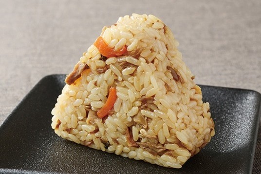 舞茸、霜降りひらたけを炒めてから煮ることで旨みをアップ。温めるともっちりおいしい。※沖縄エリアのローソンでは販売なし