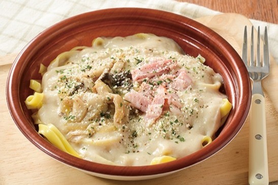 ポルチーニ香る特製きのこソースに、もちもち食感のフェットチーネを合わせた季節のパスタ。※沖縄エリアのローソンでは販売なし