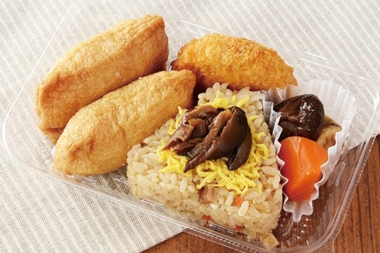いなりと季節のちらし寿司を、ちょっとしたおかずとセットになっている。※沖縄エリアのローソンでは販売なし