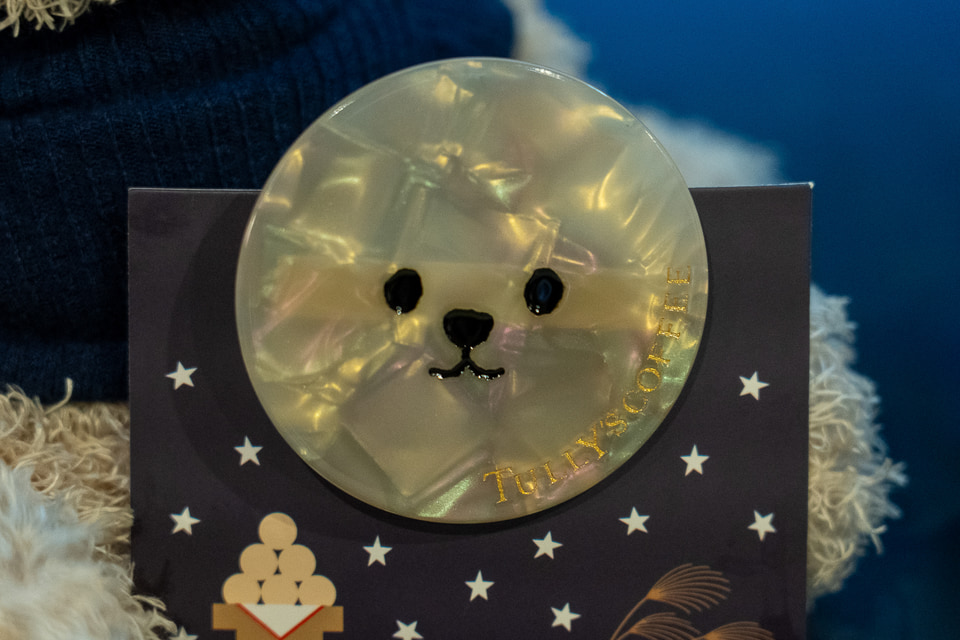 ドリンクやフードだけでなくグッズも登場する。満月のようなベアフルがクリップになった「お月見ベアフルクリップ」は、バッグに付けたり、ラッピングに活用したりするのもおすすめ。店舗では従業員もエプロンなどに付けてお月見ムードを演出するそうだ。