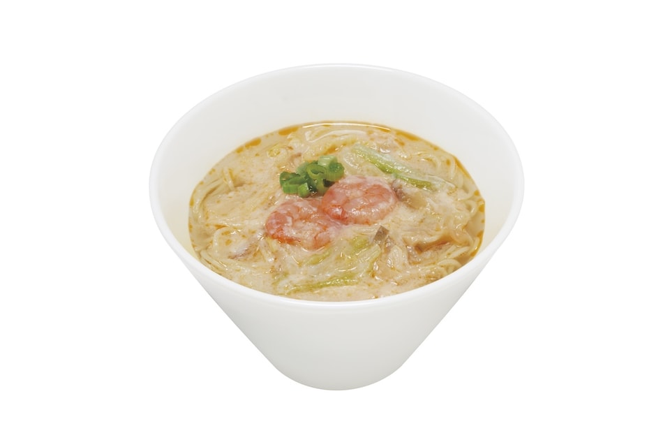 「台湾風ピリ辛豆乳野菜麺」は、台湾の定番料理「鹹豆漿(シェントウジャン)」をイメージ。昨年好評だった豆乳野菜麺スープの豆乳を増量し、えびの風味と少しピリ辛なラー油をアクセントに仕上げた。