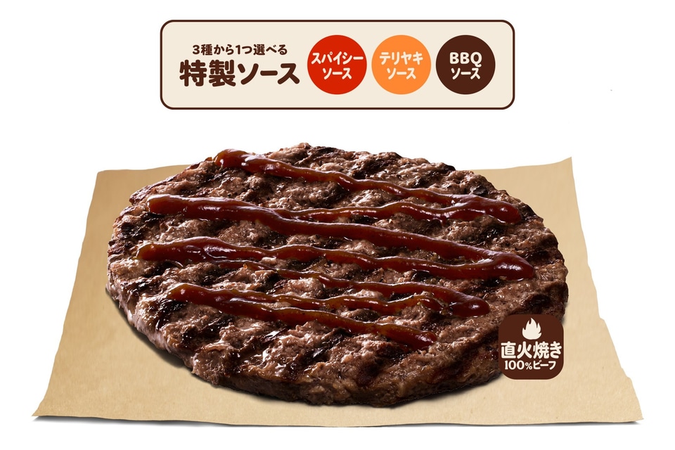 バーガーキング自慢のビーフパティを専用のブロイラーでじっくり直火焼きし、肉汁が閉じ込められたジューシーでスモーキーなおいしさをダイレクトに味わえる。種類は、塩コショウでシンプルに味わう「オン ザ ビーフ」、スパイシー・テリヤキ・BBQの3種類からソースを1つ選んで楽しむ「ソース オン ザ ビーフ」、相性抜群の「特製ライスパティ」を重ねた「ライス オン ザ ビーフ」の3種。