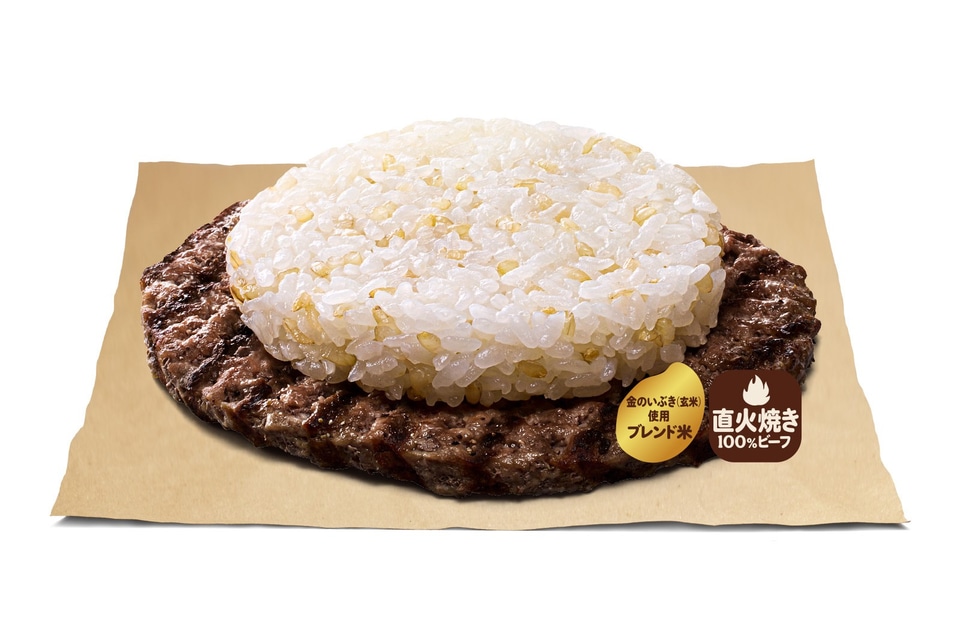 直火焼きの100%ビーフパティと、厳選された白米と金のいぶき(玄米)をブレンドした「特製ライスパティ」の相性が抜群。「特製ライスパティ」では、米の一粒一粒の輪郭がはっきりとしたつるっとした喉越しのよい、米本来のおいしさが味わえる。