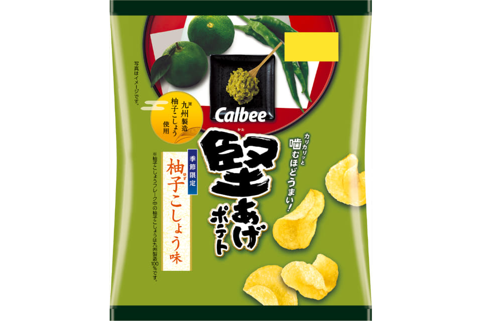 カルビー、九州製造柚子こしょうの風味を感じる「堅あげポテト 柚子こしょう味」発売
