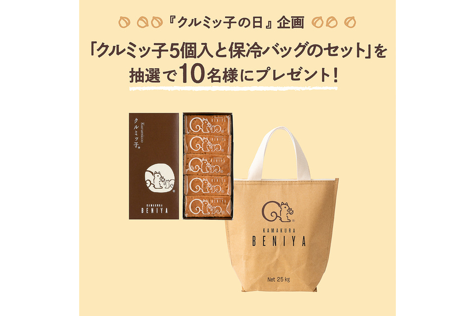 「クルミッ子の魅力を発信し、みんなでクルミッ子を食べる日」として、2022年に一般社団法人日本記念日協会で「クルミッ子の日」と登録された9月30日に向けて、SNSでプレゼントキャンペーンを行なう。賞品は「クルミッ子 5個入」と「保冷バッグ」のセットで、XとInstagramそれぞれ抽選で5名にプレゼントされる。