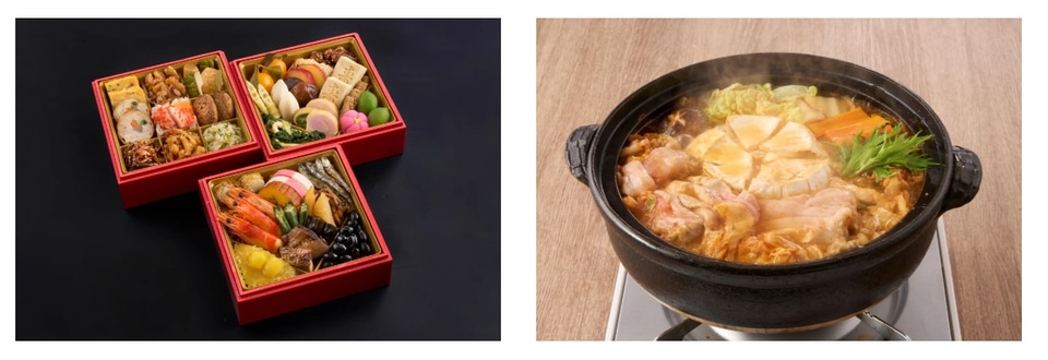 正月に嬉しい食材がセットになったコストパフォーマンスの高い「欲望おせち」(宮崎牛 A5ランク すき焼き用350gまたはボイルずわい蟹400gのセット)や「背徳おせち」(丸ごとチーズにおぼれるキムチ鍋がセット)、仕出し料理の老舗「八百彦本店」が監修した冷蔵おせち3品、人気キャラクターのおせちなど、全35品をラインアップしている。