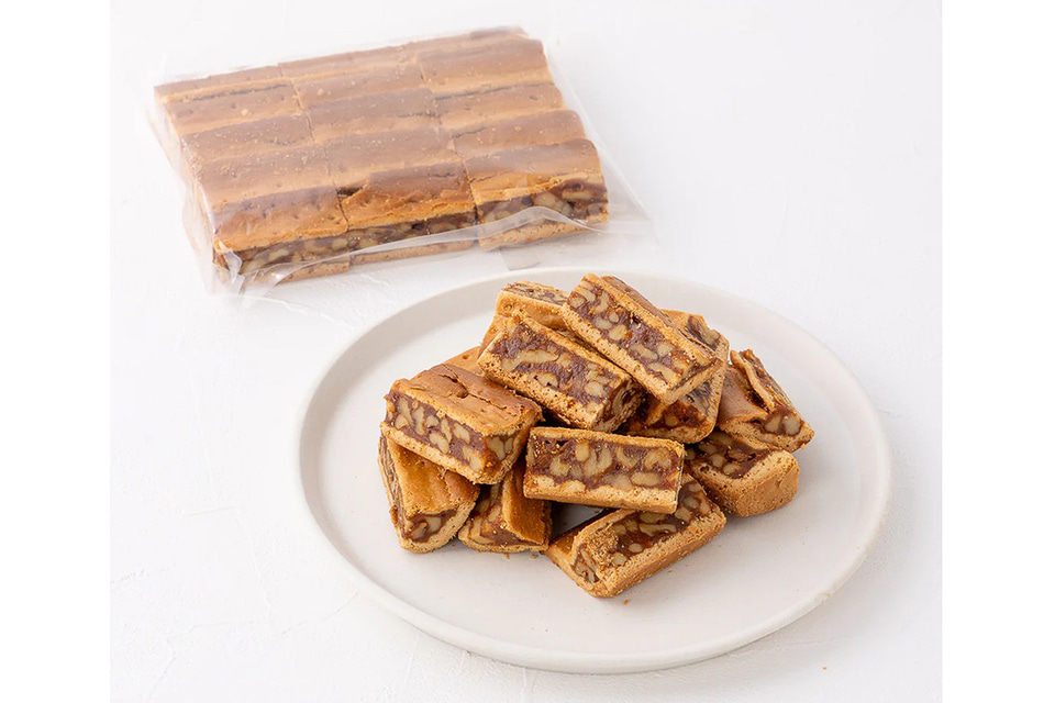 鎌倉紅谷の人気商品「クルミッ子」を製造する際にできる切れ端を袋詰めにしたもので、正規品のクルミッ子に比べて生地部分が多く、少し違った味わいと食感が楽しめるという。