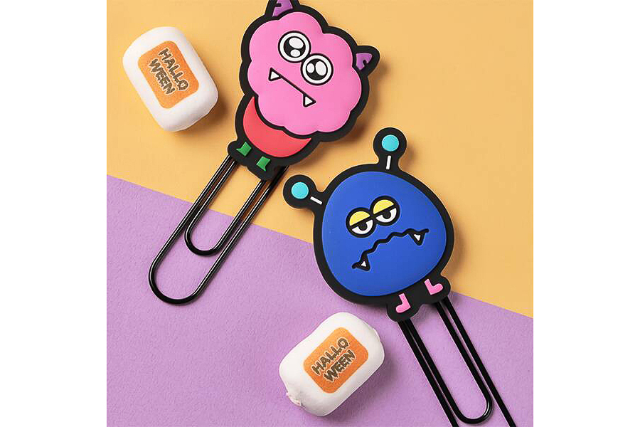 ピンクとブルーのモンスターをデザインしたクリップで、お菓子の袋を留めたりメモを留めたりできる。マシュマロが1つ付いて、いずれも価格は486円。