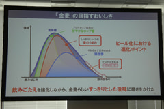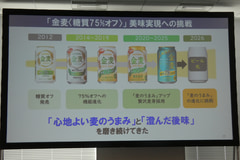 同氏は金麦の進化の歴史を振り返りながら、「麦のうまみ」と「澄んだ後味」に磨きをかけてきたとし、ビール化においてもその2つの特徴が失われないようにこだわったとする。