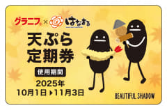 讃岐うどんチェーン「はなまるうどん」(はなまる)は、うどん1杯ごとに天ぷらまたはおでん1品が無料になる「天ぷらおでん定期券」を発売した。10月1日から使用できる。今回から、はなまるオリジナルデザイン1種に加えて「グラニフ」コラボの2種が初めて登場する。