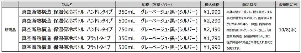 ・「真空断熱構造 保温保冷ボトル ハンドルタイプ 350mL(グレーベージュ・黒・シルバー)」(1,990円)
