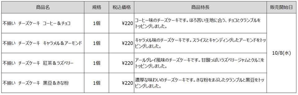 無印良品(良品計画)は、手軽に食べられるスティックタイプの「不揃い チーズケーキ」4種類を10月8日に発売する。価格は各220円。