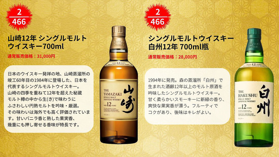 オンラインくじ!「第1弾 豪華ウイスキーみくじ(466口限定)」