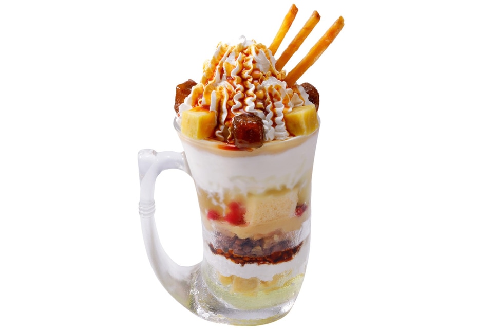 旬を迎え、ほくほくした食感が楽しめるさつまいもとミルク感たっぷりの北海道ソフトクリームが絶妙に絡み合うデザートが登場。「おいもパフェ」は、ダイスカットされたさつまいもをトッピングし、カラメルソースと北海道ソフトクリームが相性抜群。下層に青りんごゼリーがさっぱりとした味わいで、最後まで飽きずに味わえる。そのほか、あつあつの揚げたてのさつまいもスティックに、カスタード風バニラアイスを添えた「フライドスイートポテト」なども提供する。