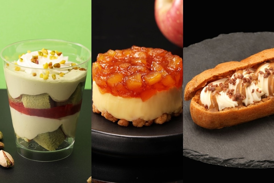 ザ・キャピトルホテル 東急 シェフパティシエの安里哲也氏が監修しており、濃厚なピスタチオクリームを使用した「ザ・ピスタチオパフェ」、りんごの食感と酸味が楽しめる「ザ・アップルクランブル」、さっぱりとした甘さのマスカルポーネクリームと苦みのきいたコーヒーソースを合わせた「ザ・ティラミスエクレア」の3品となる。