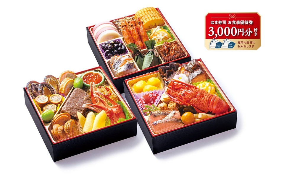 100円寿司チェーン「はま寿司」は、ゼンショーグループの公式通販サイト「ゼンショーネットストア」で「新春おせち」3品の予約を開始した。