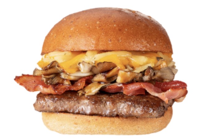 水を使わず牛乳のみで仕上げた全粒粉入りバンズに、リアル カリフォルニア ミルク認証の3種のチーズを使い、よりコク深い味わいに仕立てた。舞茸をグリルし、「BRISK STAND」でも使用されている足立醸造の「かけしょうゆ」をかけ、ウェンディーズ自慢のビーフパティとベーコンの相性のよさを最大限に引き出した。