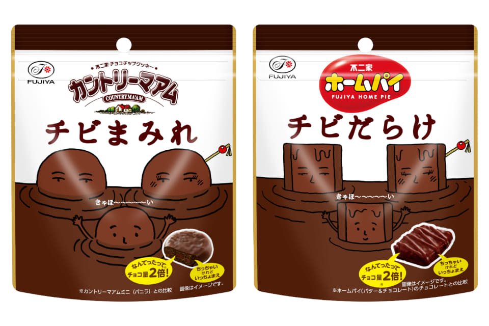 不二家は「カントリーマアムチビまみれパウチ」と「ホームパイチビだらけパウチ」を10月28日にコンビニで、11月18日に全国で発売する。