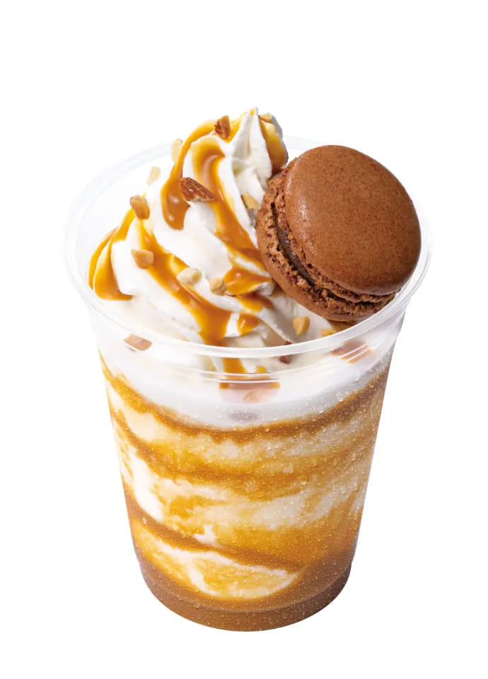 期間中は「甘じょっぱい」テイストが特徴の塩キャラメルを使った、スイーツ3品を販売。「~ショコラマカロン付き~ 塩キャラメルパフェシェーキ」は、塩キャラメルソースのほかショコラマカロン、ホイップクリーム、クラッシュナッツをトッピングした、パフェタイプのミルクシェーキ。フランス・ロレーヌの岩塩を使用している。価格は490円。
