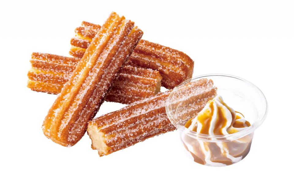 「ディップチュロ 塩キャラメルソース」は、塩キャラメルソース入りのホイップクリームにつけて食べるチュロ。こちらもソースにロレーヌ岩塩を採用した。価格は290円。