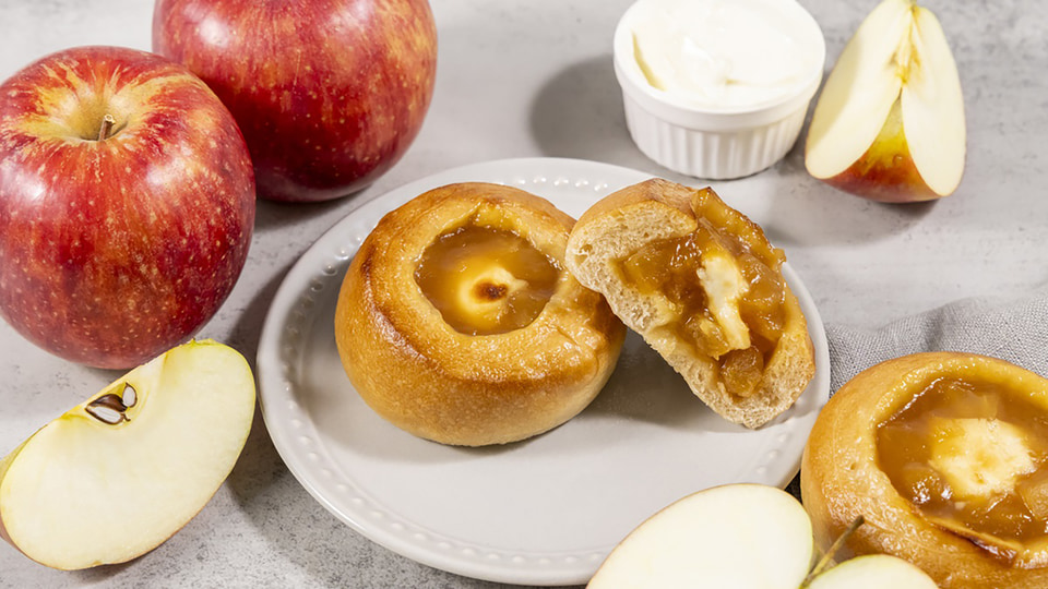 世界No.1に輝いたことのあるパティシエ・安食雄二シェフ監修商品の第3弾になるのが「紅茶香るアップルフロマージュ」。本商品は安食シェフの監修商品としては初となるホットスイーツで、中具は、食感を残したりんごのコンポートに、北海道産のクリームチーズをあわせることで、甘みの中にもコクと酸味がアクセントとなる味わいに仕立てている。生地には紅茶エキスパウダーを練り込むことで風味を感じられるようにし、ほのかに塩味を足すことで、りんごのコンポートの甘さをより感じられるように工夫されている。