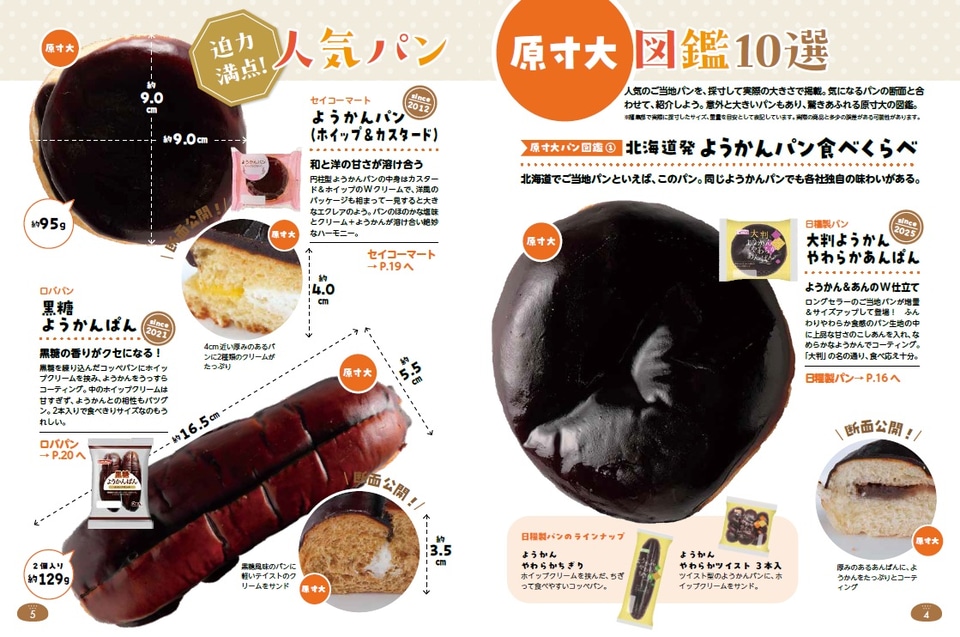 サイズ感が一目で分かる原寸大写真のほか、販売店舗や公式サイトの情報を掲載し気になったパンはすぐに調べることができる。そのほかご当地ランチパック・道の駅のパンなどを特集し、読んでいるだけで各地の特色が感じられる一冊となっている。